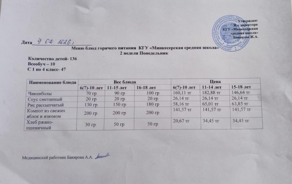 Меню 09.02.2026