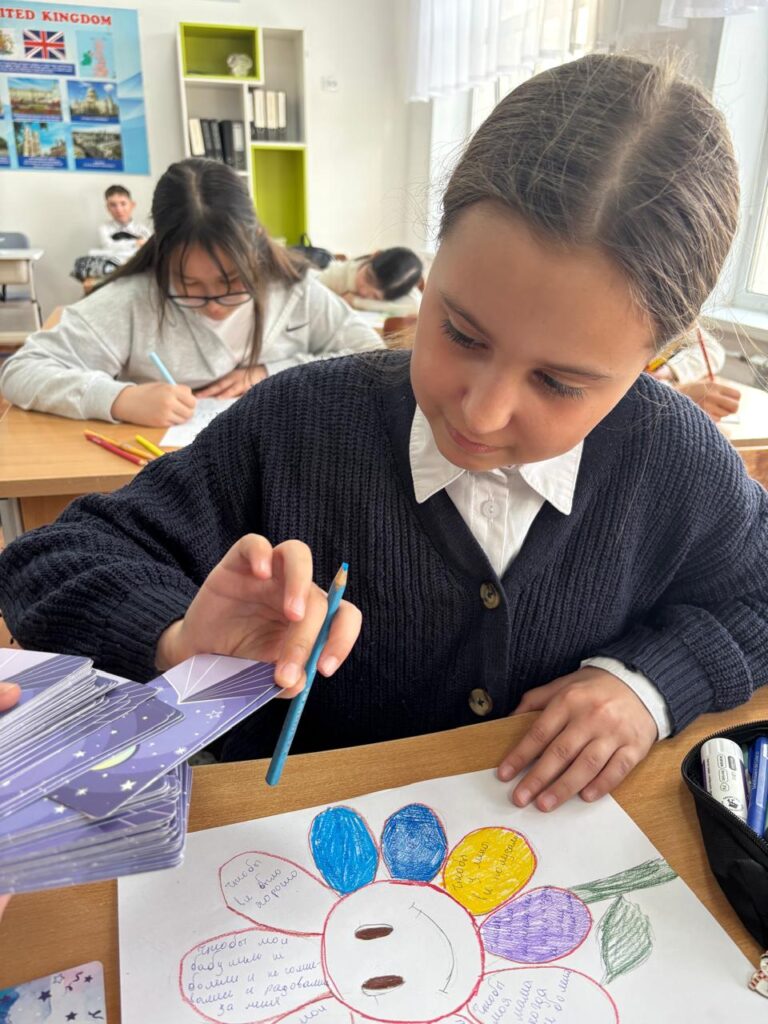 Начали с самого важного — поиска личных опор в упражнении «Цветок моих достоинств», где каждый лепесток стал символом силы и таланта ребят. Такие встречи помогают подросткам поверить в себя, учат справляться с трудностями и видеть в каждом вызове возможность для роста.